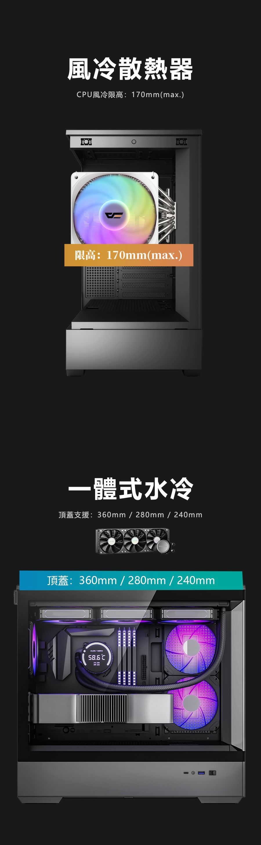 雖為 M-ATX 機殼,但可上置 360mm 水冷